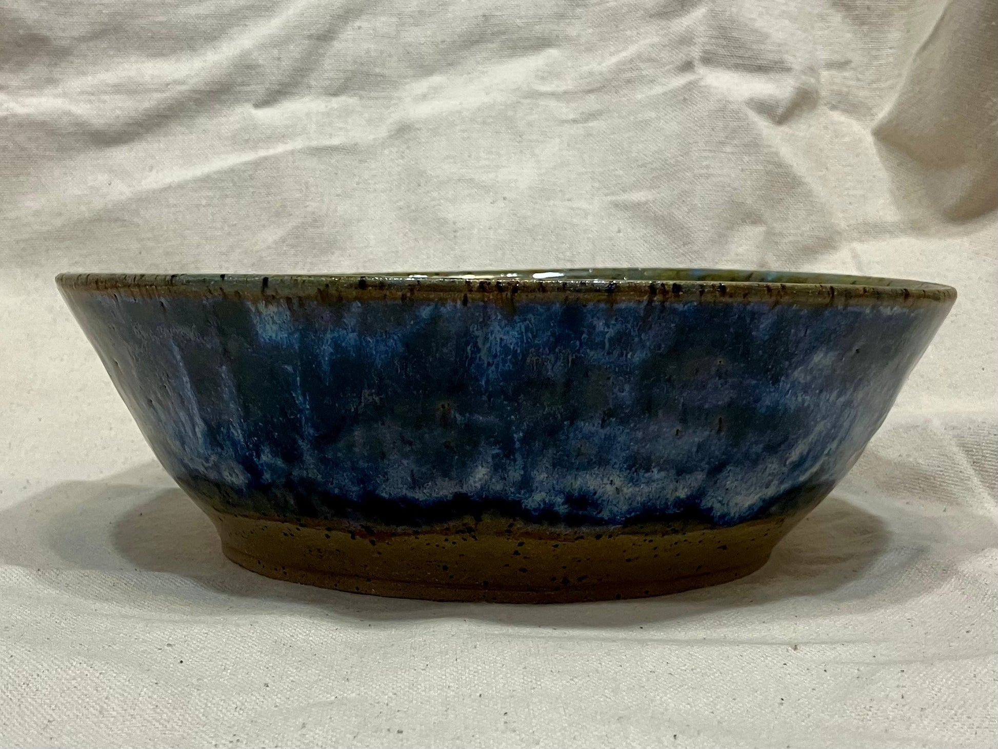Speckles and spots galore! The brown speckle stoneware clay peaks through the green and blue glazes with specktacular colors!